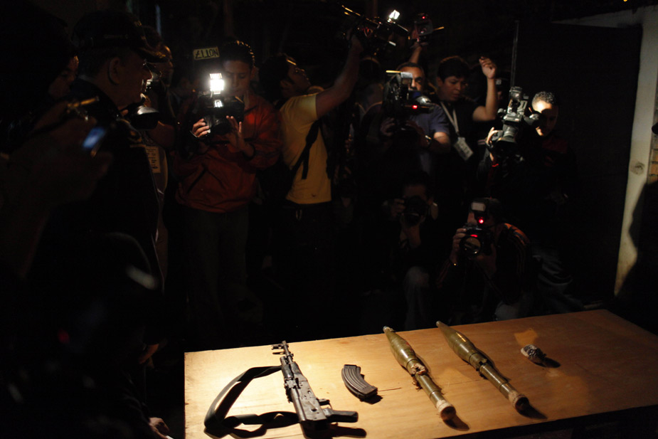 11月28日,洪都拉斯警察在首都特古西加爾巴搗毀了一座秘密武器庫(kù)。圖片來(lái)源:中國(guó)新聞網(wǎng)