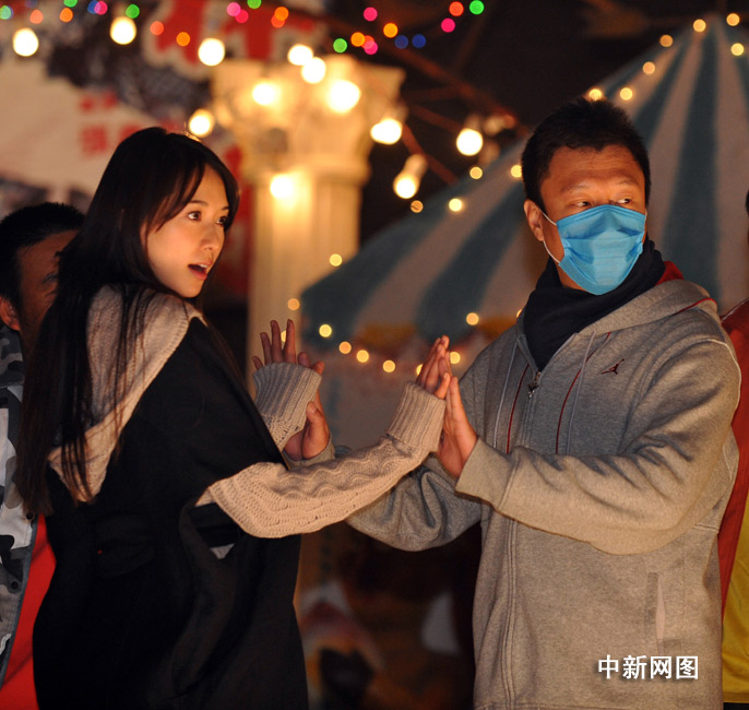 29日,由新銳導(dǎo)演李蔚然執(zhí)導(dǎo),孫紅雷、林志玲和甘薇領(lǐng)銜主演的西部奪寶喜劇大片《決戰(zhàn)剎馬鎮(zhèn)》在京郊組織了媒體探班,當(dāng)日拍攝的戲份是全片的最為精彩的重頭戲之一,整個(gè)片場喜氣洋洋,全劇組演員齊上陣,整個(gè)現(xiàn)場呈現(xiàn)一片舞蹈的海洋。其中林志玲和孫紅雷在這場大戲中大秀舞技,成為全場亮點(diǎn)。圖為在彩排現(xiàn)場,一向以硬漢示人的孫紅雷為了預(yù)防流感戴上了口罩。中新網(wǎng)記者 金碩 攝