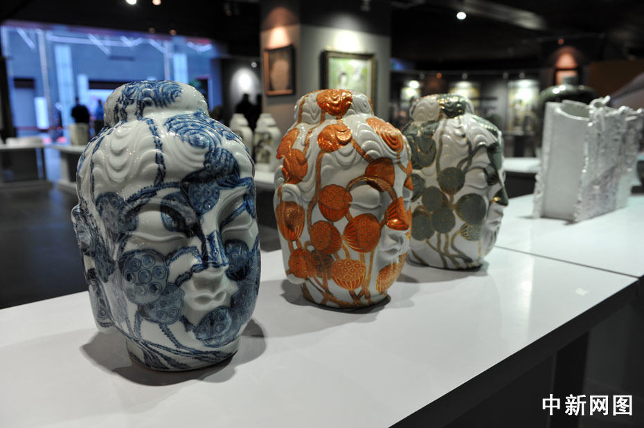 圖為現(xiàn)場(chǎng)展示的景德鎮(zhèn)精品陶瓷作品。中新網(wǎng)記者 金碩 攝