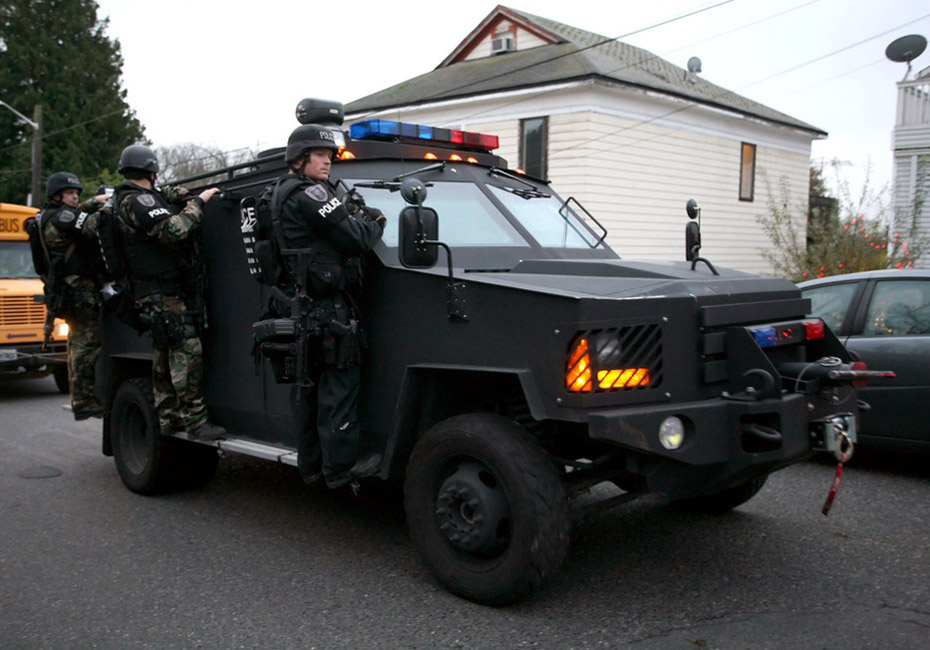 11月29日,美國4名警察在華盛頓州空軍基地附近一間咖啡館被兩名槍手槍擊,4人當(dāng)場死亡。美國軍方派遣反恐特警小組展開大規(guī)模追查。圖片來源:中國新聞網(wǎng)