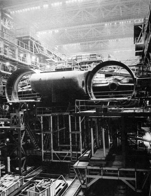 圖為建造中的“臺風(fēng)”級巨大的涵道式螺旋槳推進(jìn)器。圖片來源:人民網(wǎng)