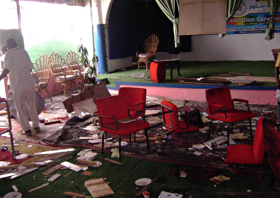 索首都摩加迪沙一家飯店3日發(fā)生的自殺炸彈襲擊事件至少已造成57人死亡,另有200多人受傷。 據(jù)索馬里官員稱,爆炸發(fā)生在該市南部政府控制區(qū)的一座飯店內(nèi)。當時,多名政府高官正出席在飯店內(nèi)舉行的大學畢業(yè)典禮暨出國留學生歡送儀式。死者中包括索馬里衛(wèi)生部長、教育部長和高等教育與文化部長。另外,青年與體育部長在爆炸中受重傷。