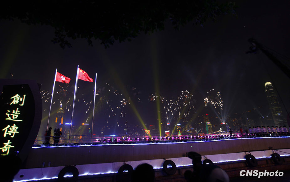 12月5日晚,第5屆東亞運(yùn)動(dòng)會(huì)開(kāi)幕式在香港維多利亞港舉行,同時(shí)配以花船巡游、燈光效果和煙花匯演,成為一屆富有特色的水上開(kāi)幕式。中新社發(fā) 盛佳鵬 攝