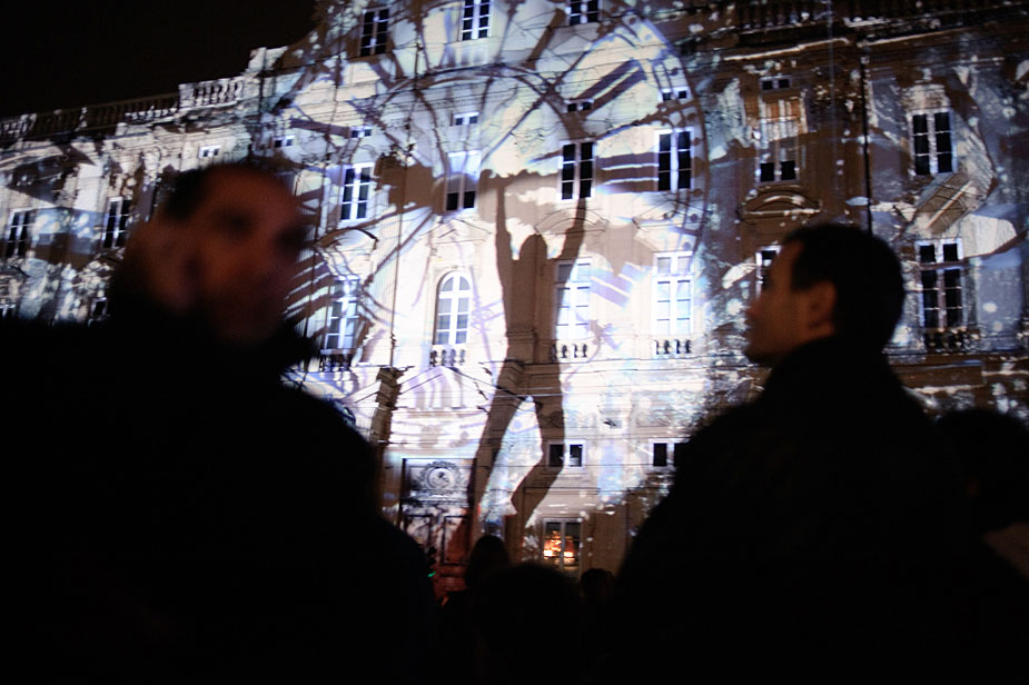 12月5日,在法國里昂,人們欣賞燈光表演。第11屆燈節(jié)到來之際,里昂城被五彩變幻的燈光裝飾。圖片來源:中國新聞網(wǎng)