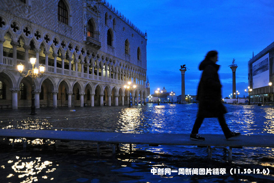 11月30日,意大利水城威尼斯受潮汐和一股強(qiáng)烈的熱帶風(fēng)暴影響再次被洪水淹沒,部分地區(qū)最高水位達(dá)到1.31米。圖片來(lái)源:中國(guó)新聞網(wǎng)