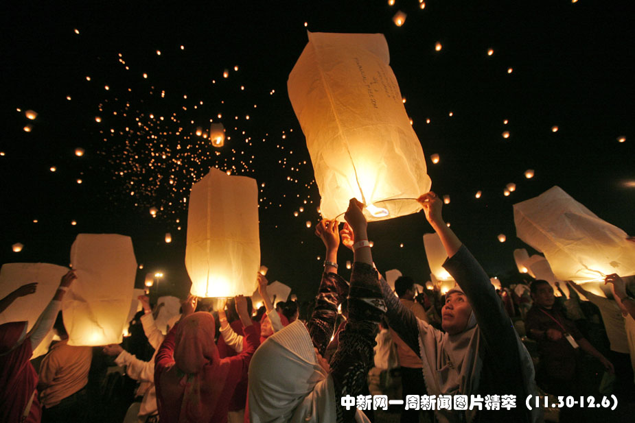 12月5日,在印度尼西亞首都雅加達(dá),人們將孔明燈升上天空。當(dāng)晚有數(shù)千人參加放燈活動(dòng),試圖打破“數(shù)量最多的孔明燈同時(shí)升空”的吉尼斯世界紀(jì)錄。最終有10000個(gè)孔明燈升上夜空。圖片來(lái)源:中國(guó)新聞網(wǎng)