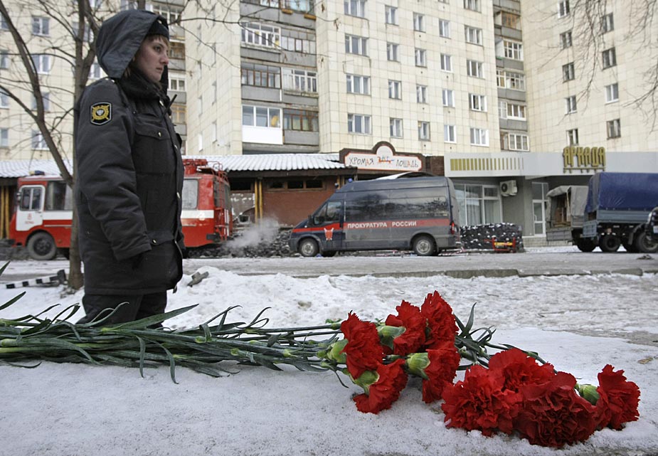 12月6日,在俄羅斯彼爾姆邊疆區(qū)首府彼爾姆市,人們?cè)谝箍倳?huì)火災(zāi)事故現(xiàn)場附近哀悼遇難者。圖片來源:中國新聞網(wǎng)