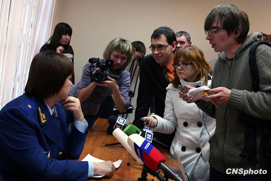 十二月六日,俄羅斯彼爾姆市夜總會火災(zāi)事故的第二天,調(diào)查委員會負(fù)責(zé)人在舉行新聞發(fā)布會時(shí)遭到聚集在此的數(shù)十家媒體記者的“圍堵”發(fā)問。中新社發(fā) 田冰 攝