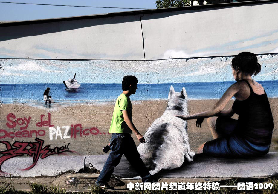 世界最長的涂鴉墻:11月15日,智利圣地亞哥近千名藝術(shù)家繪制了1800米長的涂鴉墻,打破了吉尼斯世界紀(jì)錄。圖片來源:中國新聞網(wǎng)