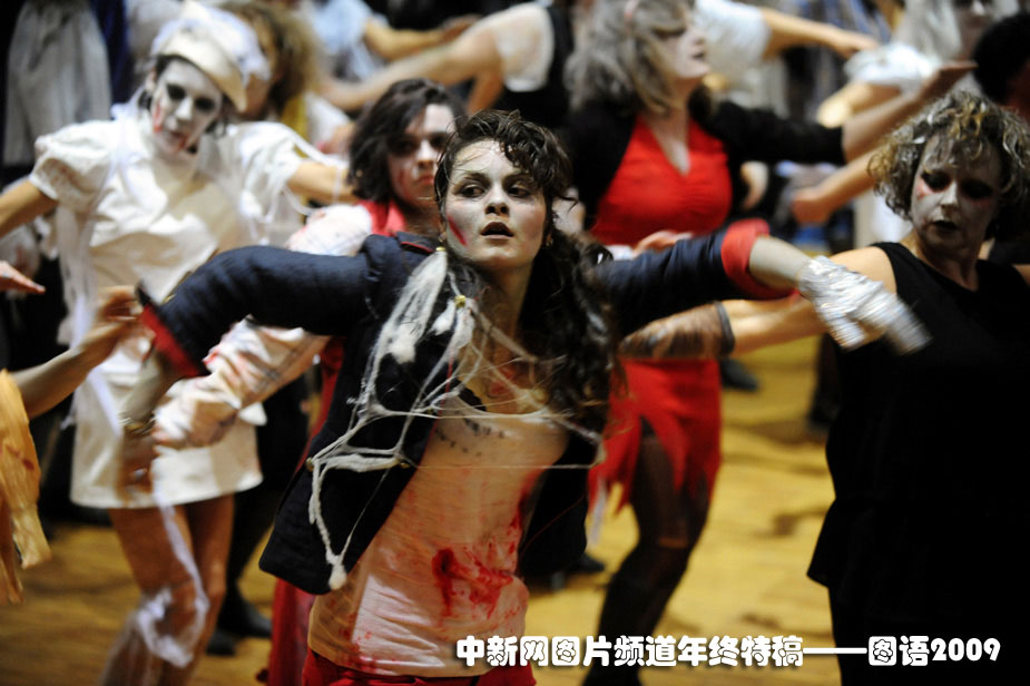 全世界最多人同時(shí)跳舞世界紀(jì)錄:10月25日,“戰(zhàn)栗全世界”活動(dòng)在全球300多座城市同期舉行,全球一共有大約20000人同時(shí)跳起了邁克·杰克遜著名的戰(zhàn)栗舞。歌迷們借此表達(dá)了對(duì)這位流行音樂之王的哀思。并且刷新了全世界最多人同時(shí)跳舞的世界紀(jì)錄。圖為在法國的Gourin,歌迷跳起“戰(zhàn)栗舞”。圖片來源:中國新聞網(wǎng)