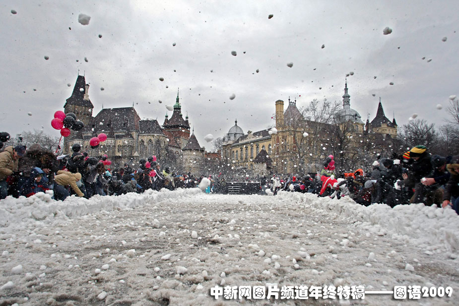 最多人集體打雪仗:1月31日,匈牙利一家公司組織人們在首都布達佩斯的一個公園內(nèi)集體打雪仗,他們希望打破美國密歇根理工大學(xué)在2006年創(chuàng)下的3700多名學(xué)生集體打雪仗的吉尼斯世界紀錄。圖片來源:中國新聞網(wǎng)