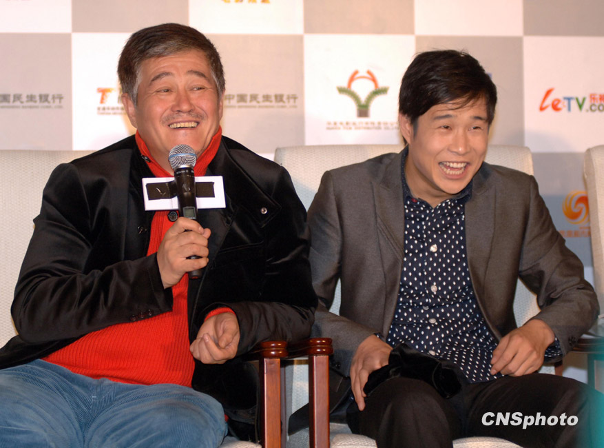 12月9日下午,張藝謀喜劇新作《三槍拍案驚奇》在京舉行首映發(fā)布會,導(dǎo)演張藝謀、大病初愈的趙本山攜孫紅雷、小沈陽、閆妮、倪大洪、程野、毛毛全明星主創(chuàng)團(tuán)隊(duì)齊齊亮相。現(xiàn)場張藝謀、趙本山、小沈陽搞笑不斷,引得爆笑連連,上演了一出戲外喜劇。趙本山首度回應(yīng)了花兩億購買私人飛機(jī)一事,稱還沒有定下來。張藝謀表示會和“趙家班”繼續(xù)深度合作,并且豪言預(yù)計(jì)未來的中國電影單部影片票房可能達(dá)到2億美元。圖為張藝謀、趙本山、小沈陽成為“笑彈”。中新社發(fā) 李學(xué)仕 攝