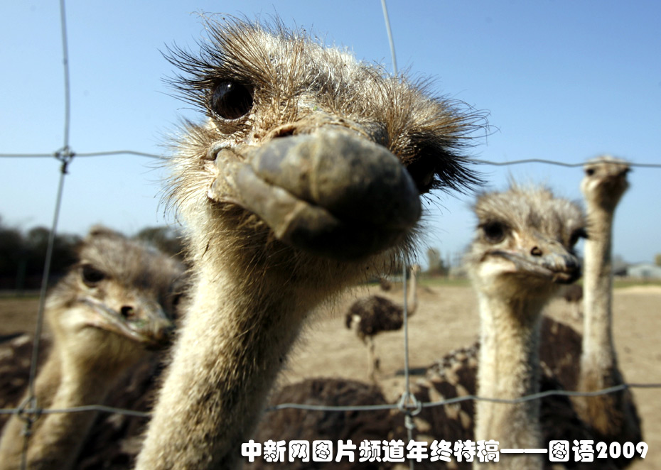 德國北部的鴕鳥農(nóng)場(chǎng)里,一只鴕鳥好奇地看著鏡頭。