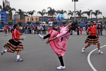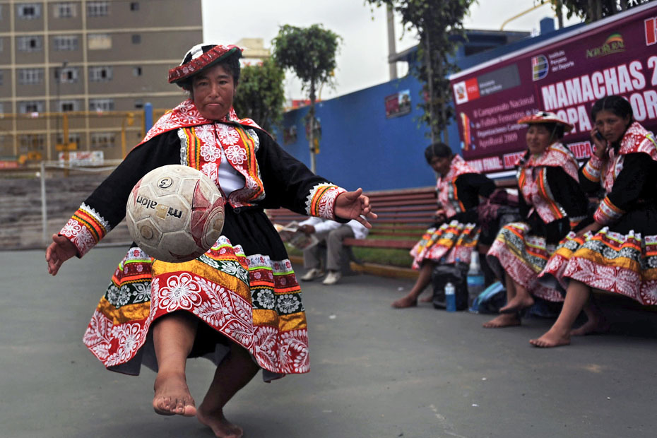 12月12日,秘魯印第安婦女在利馬國家體育場(chǎng)外舉辦了一場(chǎng)特別的足球賽,所有的球員均身著傳統(tǒng)服飾光腳上陣妙趣橫生。圖片來源:中國新聞網(wǎng)