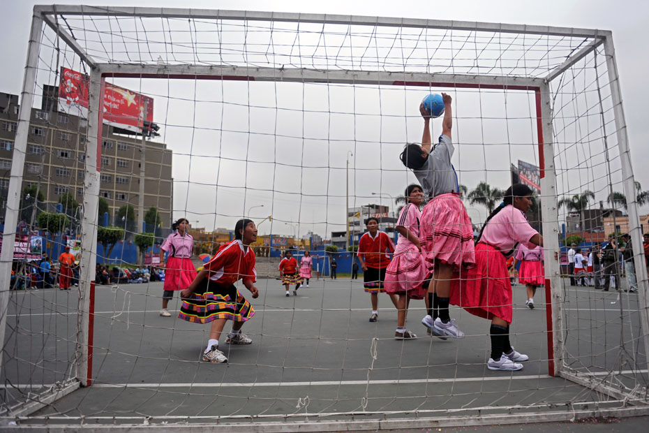 12月12日,秘魯印第安婦女在利馬國家體育場外舉辦了一場特別的足球賽,所有的球員均身著傳統(tǒng)服飾光腳上陣妙趣橫生。圖片來源:中國新聞網