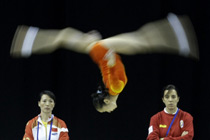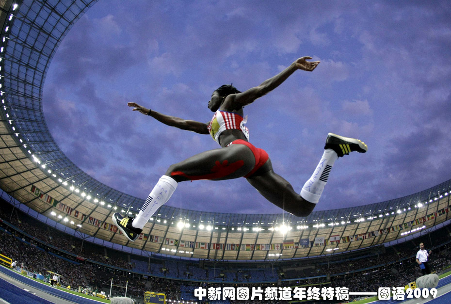 世界田徑錦標(biāo)賽賽場上,古巴選手薩維涅以14米95的成績獲得女子三級跳遠(yuǎn)的金牌。