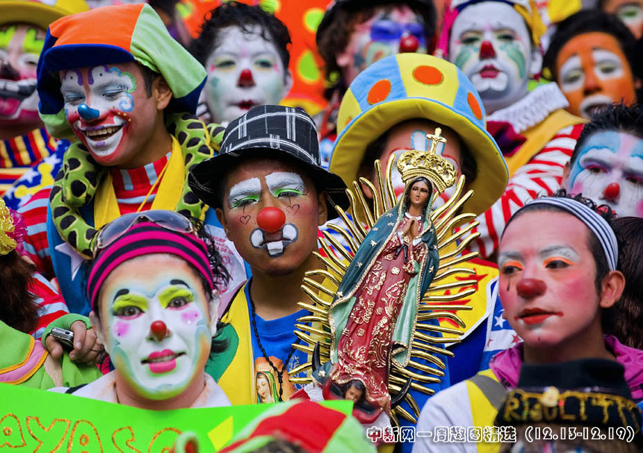 12月16日,墨西哥小丑們聚集在首都墨西哥城參加街頭游行活動,700多名小丑用自己五彩斑斕的服飾和滑稽可笑的表演為沿途的人們帶來歡笑。圖片來源:中國新聞網(wǎng)>>點擊觀看詳細內(nèi)容