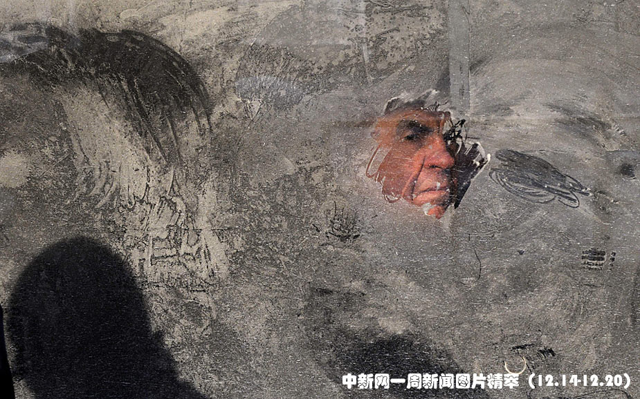 15日(周二),烏克蘭首都基輔的氣溫降至攝氏零下16度,圖為一名男子在公交車上透過(guò)結(jié)冰的車窗往外看。圖片來(lái)源:中國(guó)新聞網(wǎng)