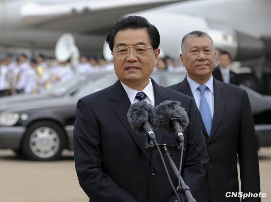 12月19日中午,中共中央總書記、國家主席、中央軍委主席胡錦濤乘專機抵達(dá)澳門并在機場發(fā)表講話。中新社發(fā) 廖攀 攝