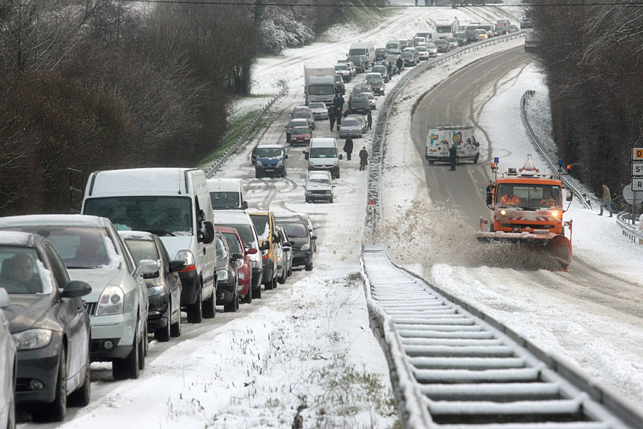 圖為12月18日,大雪導(dǎo)致法國(guó)圣約瑟夫地區(qū)出現(xiàn)嚴(yán)重堵車。