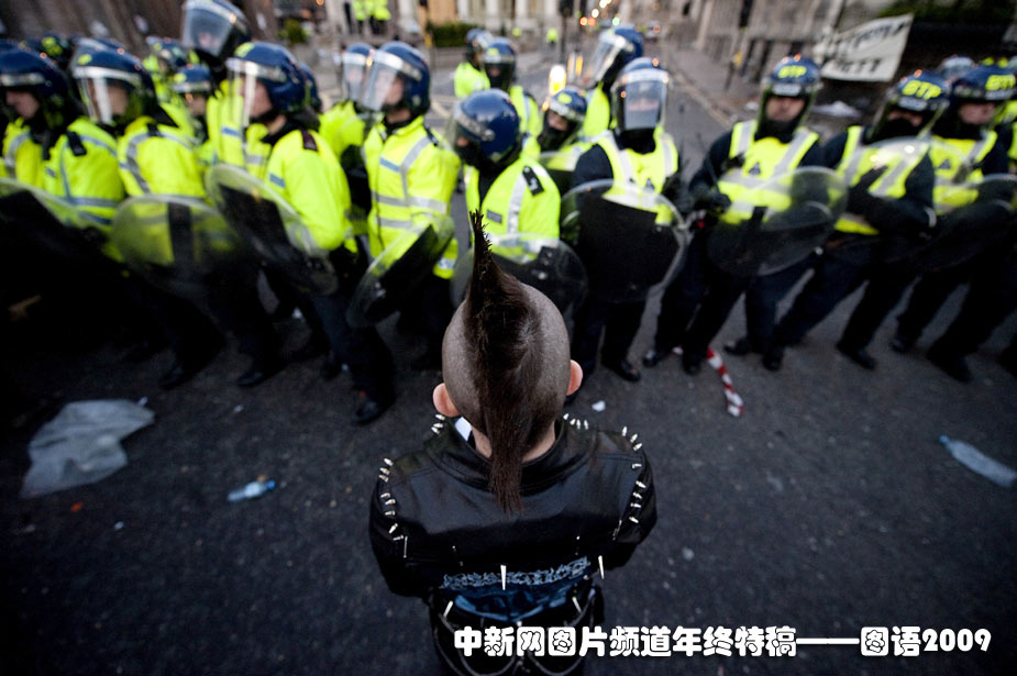 2009年4月1日,近4000名示威者涌到倫敦抗議,并向在場維持秩序的警方投擲煙霧彈和雜物,有的企圖突破警方防線沖擊英格蘭銀行,有人甚至沖入蘇格蘭皇家銀行一處分行,與警員發(fā)生沖突。