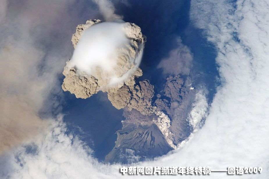 2009年6月12日,國際空間站拍到千島群島上的Sarychev火山爆發(fā)初期的景象。