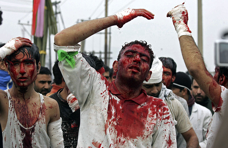 12月28日,印度穆斯林慶祝阿舒拉節(jié)。一些當?shù)啬滤沽衷趦x式上用鐵鞭抽打自己,以此慶祝節(jié)日。圖片來源:中國新聞網(wǎng)
