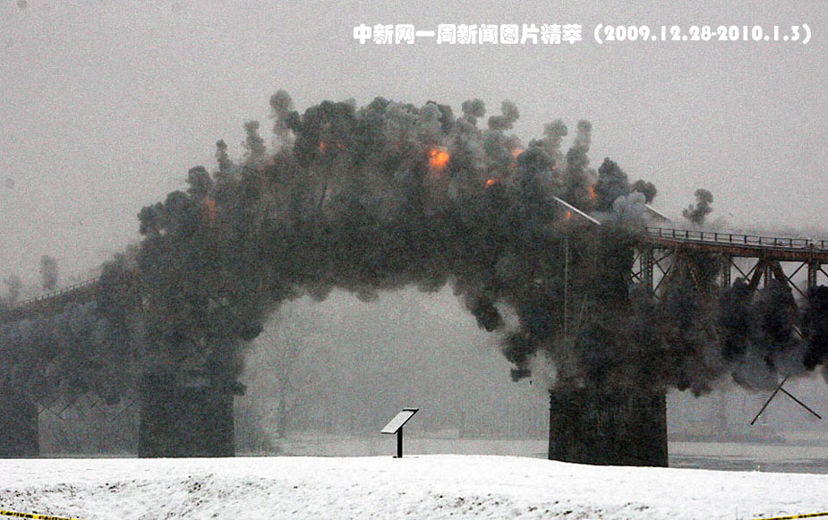 周一(28日),連接紐約州克朗波音特與佛蒙特州艾迪生的尚普蘭湖大橋被爆破。尚普蘭大橋全長2,184英尺(約合665米),是同類橋梁中第一座被用于公路交通的,其使用歷史達80年。由于混凝土橋墩受到腐蝕,尚普蘭大橋在今年10月被關(guān)閉,新的大橋預(yù)計在2011年夏天開放。圖片來源:中國新聞網(wǎng)