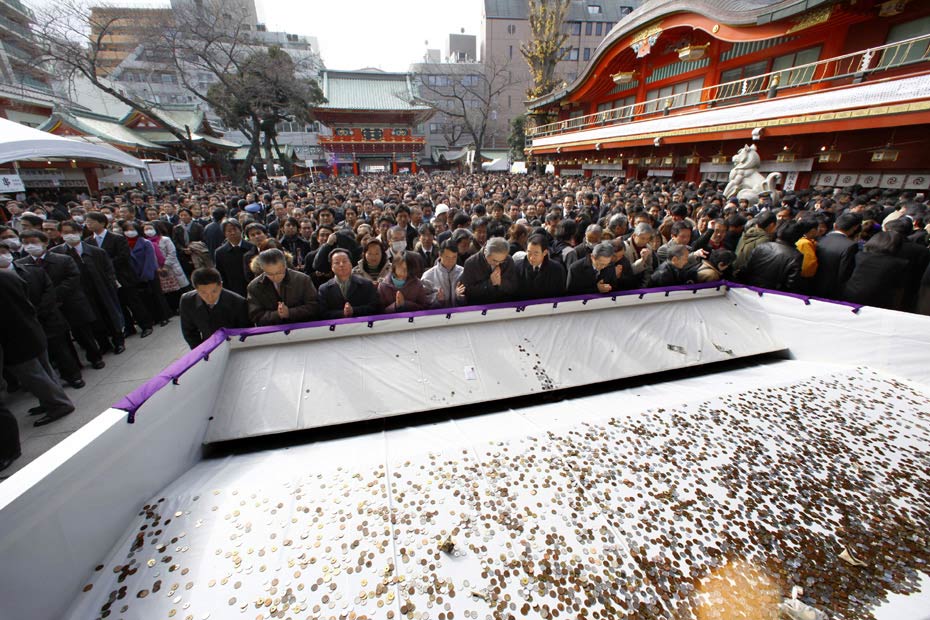 2010年1月4日,日本東京,商人聚集在神田神社里祈福,希望在新的一年里生意興隆。當(dāng)天是日本股市2010年首個交易日,市場升勢延續(xù)。圖片來源:中國新聞網(wǎng)