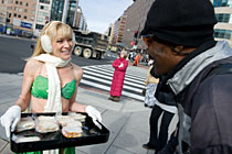 女郎寒風(fēng)中宣傳素食