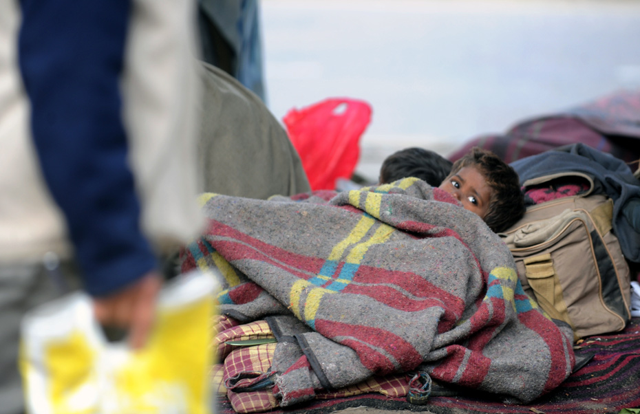 1月4日,印度新德里,一個無家可歸的兒童蜷縮在毯子里,印度官員稱,該國北部地區(qū)突遭寒流襲擊造成至少40人死亡,促使政府4日不得不關(guān)閉上千所學(xué)校并發(fā)放取暖燃料 。