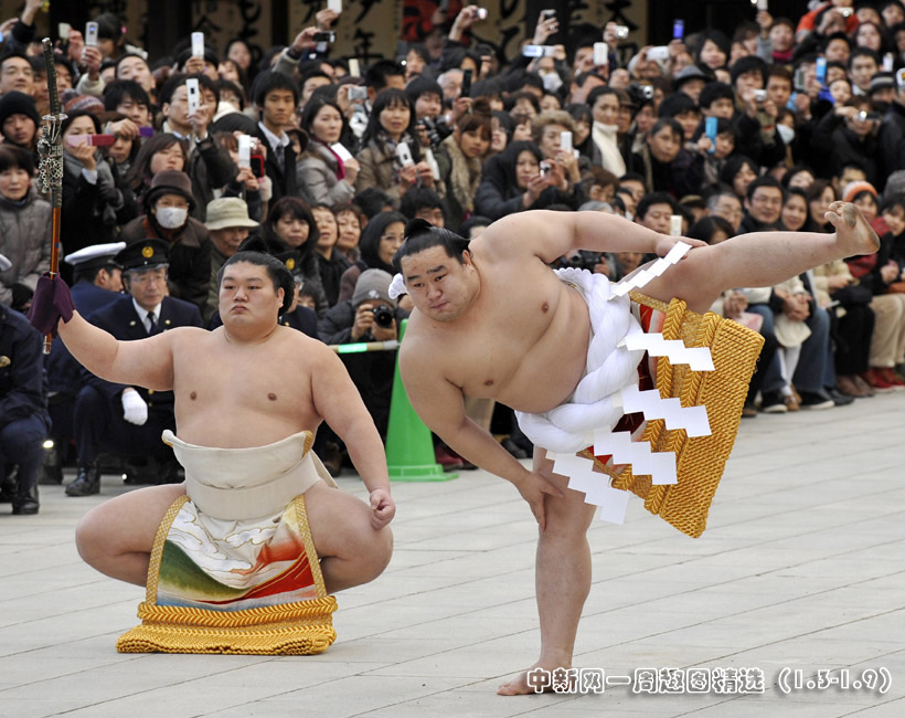 1月6日,日本舉行了傳統(tǒng)的相撲表演迎新年活動。圖片來源:中國新聞網(wǎng)>>點擊觀看詳細(xì)內(nèi)容