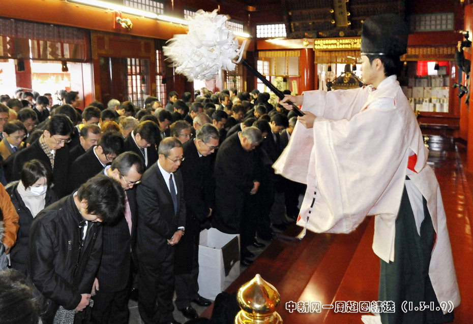 2010年1月4日,日本東京,商人聚集在神田神社里祈福,希望在新的一年里生意興隆。當(dāng)天是日本股市2010年首個(gè)交易日,市場升勢(shì)延續(xù)。圖片來源:中國新聞網(wǎng)>>點(diǎn)擊觀看詳細(xì)內(nèi)容