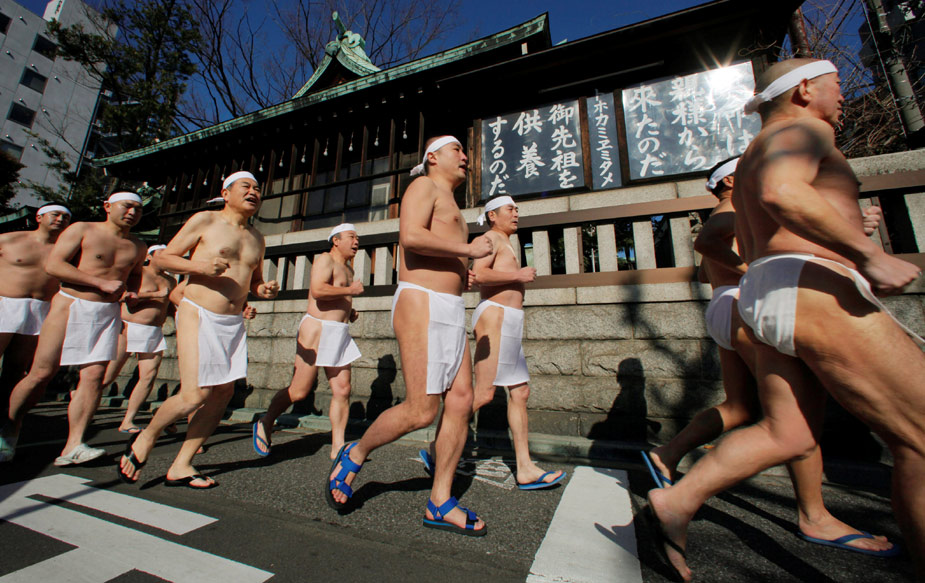 2010年1月10日,日本東京,眾多健身愛好者一同在冷水中浸泡,祈禱自己在新一年身體健康,并展示自己的體魄。
