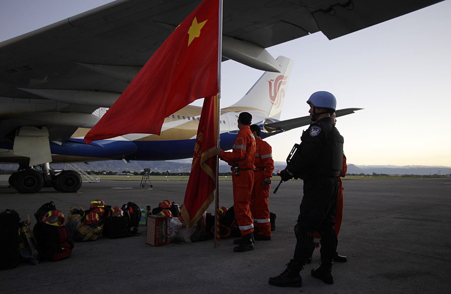 1月14日,中國國際救援隊乘坐中國國際航空公司專機(jī),飛行20個小時抵達(dá)海地首都太子港展開地震救援工作。