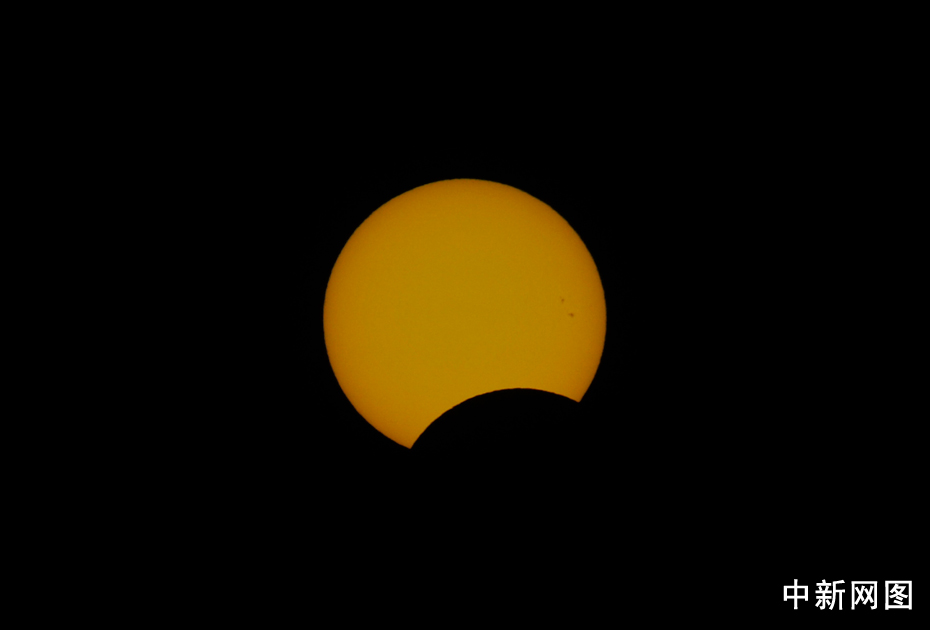 圖為北京時間15:53拍攝到的太陽。中新網(wǎng)記者 金碩 攝