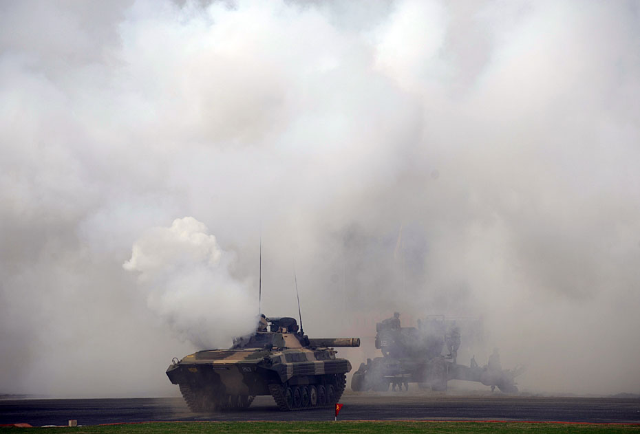 圖為印度陸軍炮兵在建軍節(jié)上表演。
