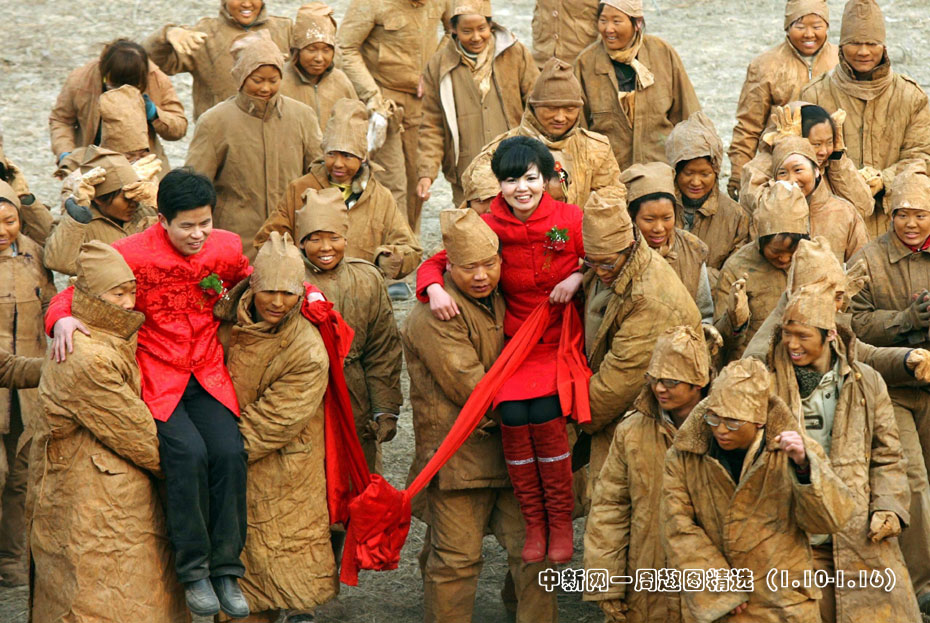 1月10日,四個(gè)"泥人”用手搭成原始花轎抬著一對(duì)新人在鄭州黃河岸邊別出心裁的舉行婚禮。新人面向孕育了中華民族五千年文明的黃河,一拜天地,二拜高堂,之后,夫妻鞠躬對(duì)拜。在世風(fēng)奢華、婚禮鋪張的當(dāng)下,一對(duì)新人在茫茫黃河邊,讓厚土為證,海誓山盟,喜結(jié)連理,以行為藝術(shù)形式表達(dá)人們保持本真、適應(yīng)環(huán)境的心聲。圖片來(lái)源:中國(guó)新聞網(wǎng)>>點(diǎn)擊觀看詳細(xì)內(nèi)容