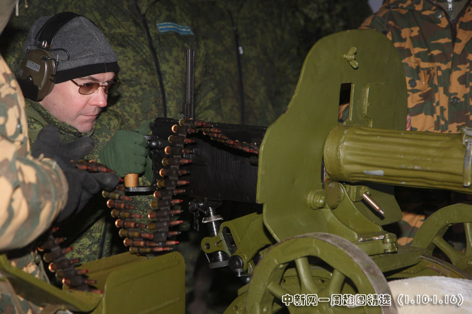當?shù)貢r間1月14日,俄羅斯總統(tǒng)梅德韋杰夫在莫斯科郊外參觀二戰(zhàn)軍事武器展覽,并且體驗各種武器裝備圖片來源:中國新聞網(wǎng)>>點擊觀看詳細內容