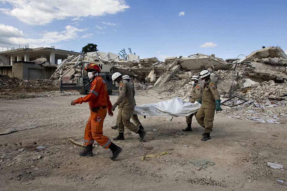 1月16日,海地首都太子港,中國國際救援隊在聯(lián)海團總部對遇難者進行搜尋工作。此前八名中方失蹤人員的遺體已全被找到。圖片來源:中國新聞網(wǎng)