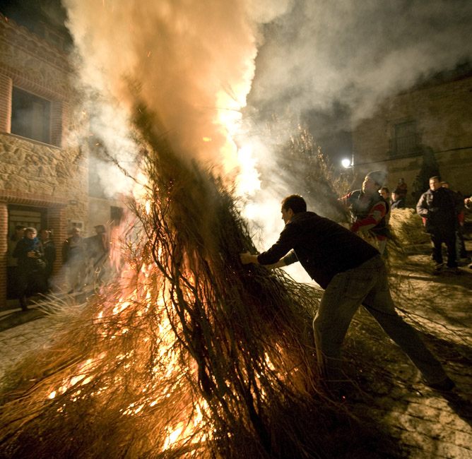 1月16日,西班牙一小村莊舉行一年一度的圣安東尼贖罪節(jié),勇敢的騎士們騎上心愛的坐騎穿過熊熊燃燒的火堆。 圖片來源:中國新聞網(wǎng)