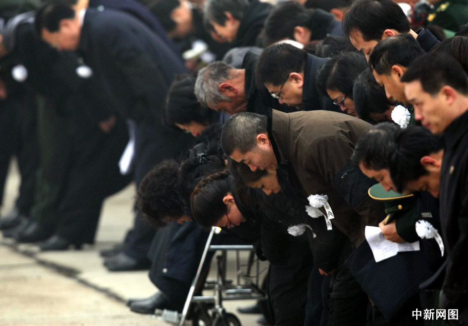 1月19日上午,在海地地震中犧牲的八位中國維和警察遺體回國接機儀式在北京首都機場舉行。中新社記者 富田 攝