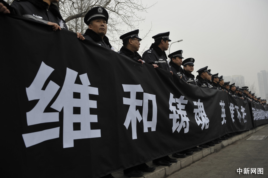 1月19日,北京民眾自發(fā)守候在通往北京八寶山殯儀館的路口迎接英烈的靈柩。當(dāng)日,八位海地地震遇難中國維和警察的靈柩搭乘專機將抵達北京。中新網(wǎng)記者 金碩 攝