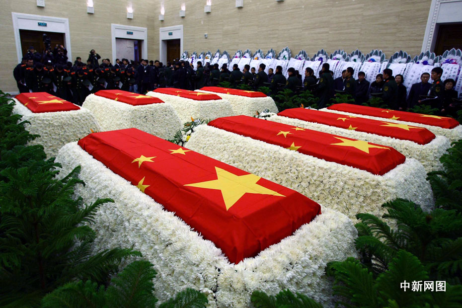 海地地震遇難中國維和警察遺體告別儀式1月20日上午9時(shí)在北京八寶山殯儀館大禮堂舉行。圖片來源:中國新聞網(wǎng)