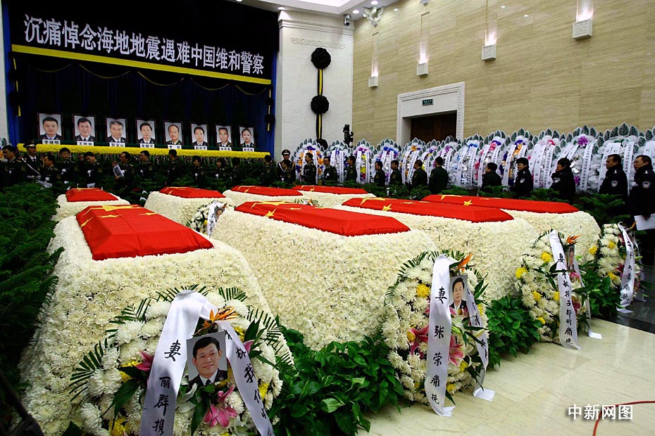海地地震遇難中國(guó)維和警察遺體告別儀式1月20日上午9時(shí)在北京八寶山殯儀館大禮堂舉行。圖片來(lái)源:中國(guó)新聞網(wǎng)