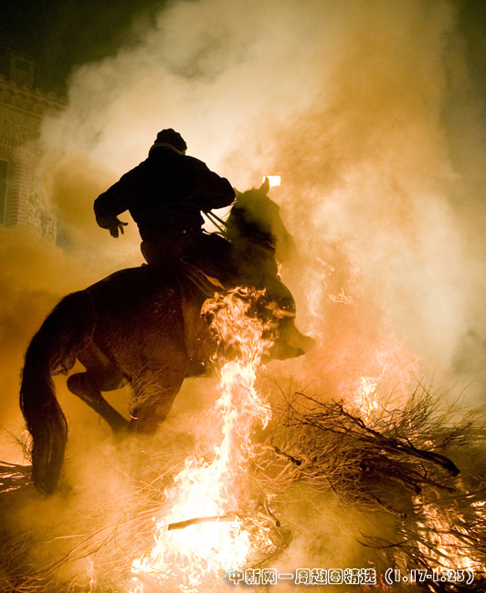 1月16日,西班牙一小村莊舉行一年一度的圣安東尼贖罪節(jié),勇敢的騎士們騎上心愛的坐騎穿過熊熊燃燒的火堆。圖片來源:中國新聞網(wǎng)>>點(diǎn)擊觀看詳細(xì)內(nèi)容