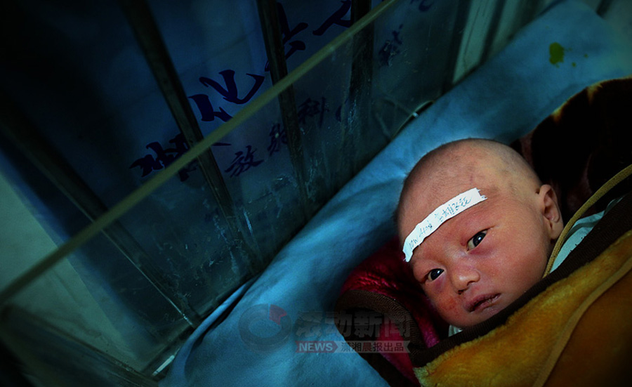 1月15日,湖南省兒童醫(yī)院,小振和躺在醫(yī)院新生兒的小床上,偶爾哇哇大哭,偶爾睜開雙眼,驚恐地打量著這個(gè)陌生的世界。瀟湘晨報(bào) 記者 楊抒懷 攝