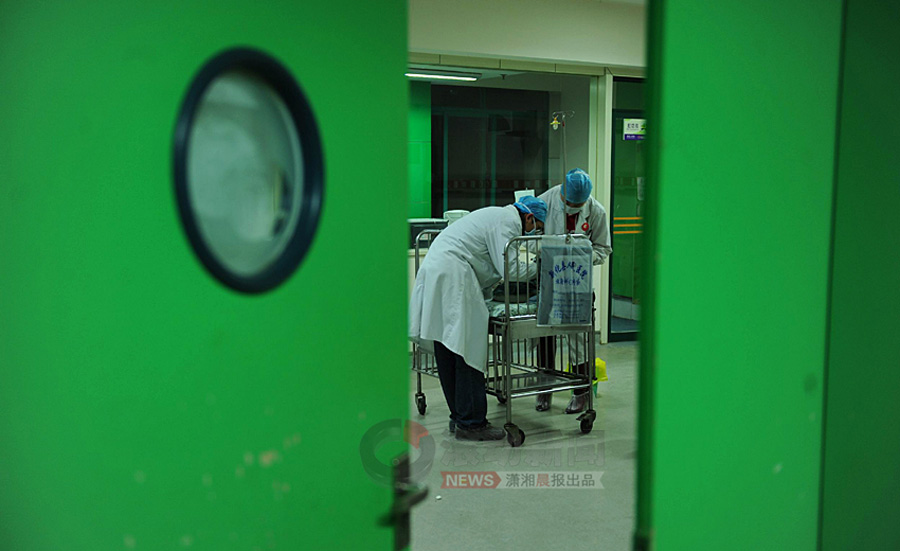 1月18日下午6點(diǎn)32分,在小振和去世后1小時(shí)內(nèi),眼庫工作人員到湖南省兒童醫(yī)院病房,在對著小小的遺體三鞠躬后,取出了眼角膜。瀟湘晨報(bào) 記者 楊抒懷 攝