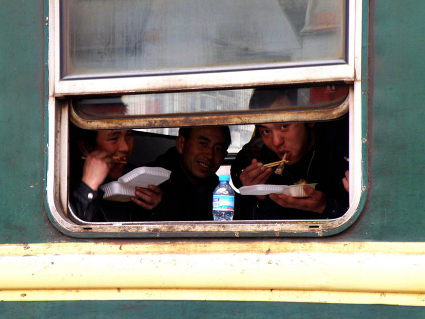 一年一度的春運(yùn)今日起正式開始。2010年的春運(yùn)從1月30日起至3月10日,為期40天,其中節(jié)前15天,節(jié)后25天。據(jù)權(quán)威預(yù)測(cè),今年春運(yùn)客運(yùn)量料超25億人次。圖為1月30日,春運(yùn)啟幕,湖北宜昌火車站,旅客在火車上吃午餐。劉君鳳 攝