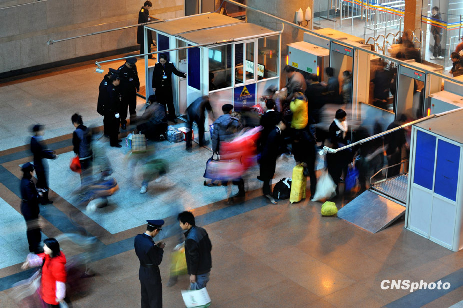 一年一度的春運(yùn)今日起正式開(kāi)始。2010年的春運(yùn)從1月30日起至3月10日,為期40天,其中節(jié)前15天,節(jié)后25天。據(jù)權(quán)威預(yù)測(cè),今年春運(yùn)客運(yùn)量料超25億人次。 圖為1月30日,貴陽(yáng)火車站2010春運(yùn)第一天,車站秩序井然。中新社發(fā) 吳東俊 攝